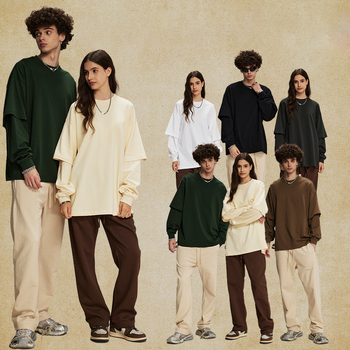 스트리트 트렌드 사용자 정의 남자의 두 조각 티셔츠 사용자 정의 인쇄 더블 레이어 긴 소매 캐주얼 티셔츠 오르간 면 305G 티셔츠