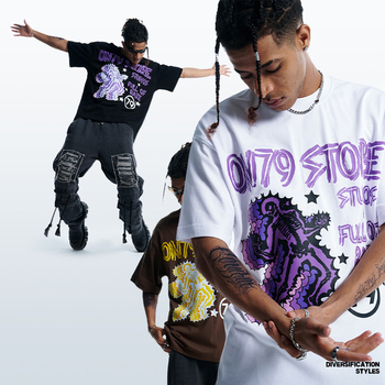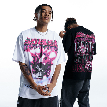 Baixo MOQ Dark Bomb Crânio Moda Impressão T-shirt Peso Pesado Moda Hip HopT Shirt Homens e Mulheres Lavado Tshirt